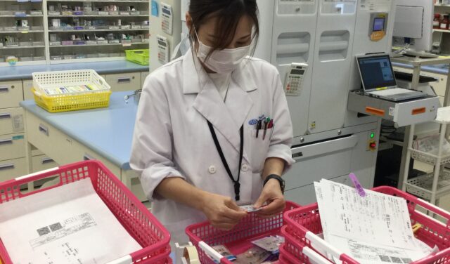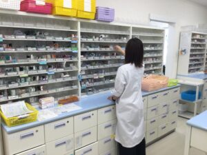 その後は患者様の対応がメインとなり、受付・入力・ピッキング・分包・お会計などを行います。