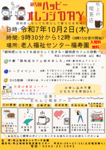 10月2日(木)に行われる認知症カフェ合同イベント「ハッピーオレンジDAY」に参加いたします!✨
