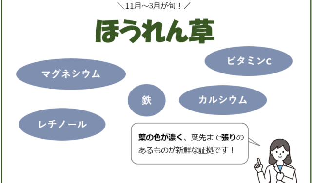 1年中スーパーで見かけるほうれん草ですが、一般的に11月~3月が旬と言われています。