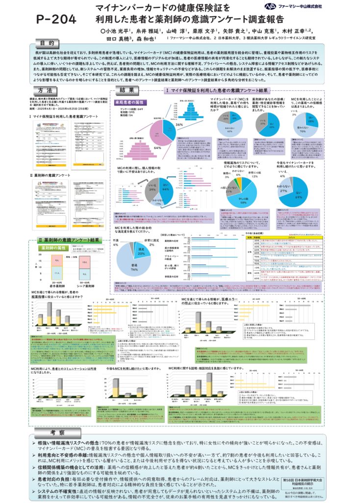 テーマ:「マイナンバーカードの健康保険証を利用した患者と薬剤師の意識アンケート調査報告」