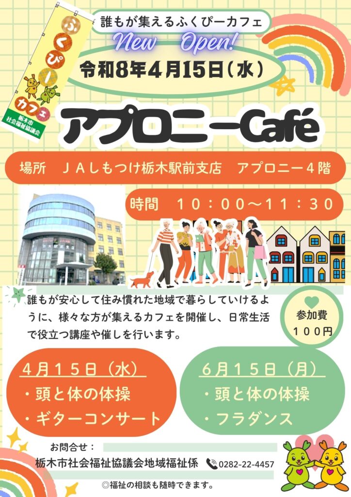 4月15日(水)アプロニーCafe(栃木市健康イベント)に参加します!
