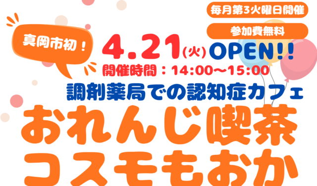 4月21日(火)14時より、真岡市の芳賀赤十字病院様隣にありますコスモ薬局真岡店にて「おれんじ喫茶コスモもおか」がスタートいたします!✨