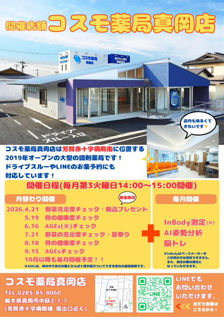 ・開催場所:コスモ薬局真岡店(栃木県真岡市中萩2-7-7) ※芳賀赤十字病院様南出口近く