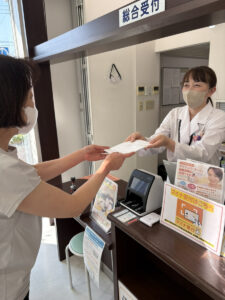 ☺【受付】では、患者さまが来局された際に最初に対応する立場として、いわば「薬局の顔」となり、「お待たせしないこと」を最優先に行動しています。